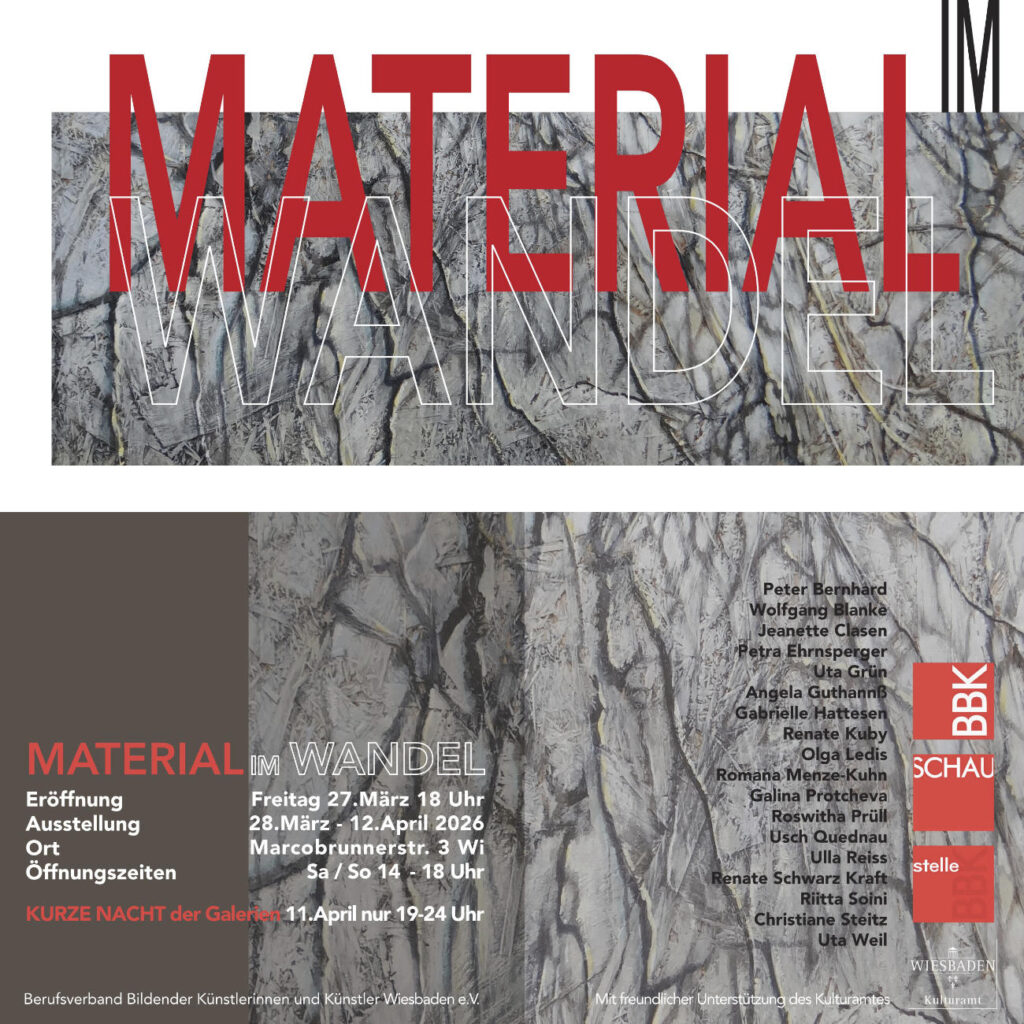 Samstag, 11.4.26 Kurze Nacht der Galerien 19:00 bis 24:00 LASERCUT und SCHERENSCHNITT Kunsthaus Wiesbaden, Schulberg 10, 65183 Wiesbaden Atelier 11, ganz oben, einfach mit dem Aufzug oder sportlich über das prächtige Treppenhaus
